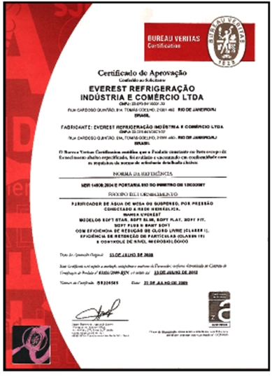 A linha de purificadores de água gelada da Everest possui esta certificação desde 30 de Julho de 2004.